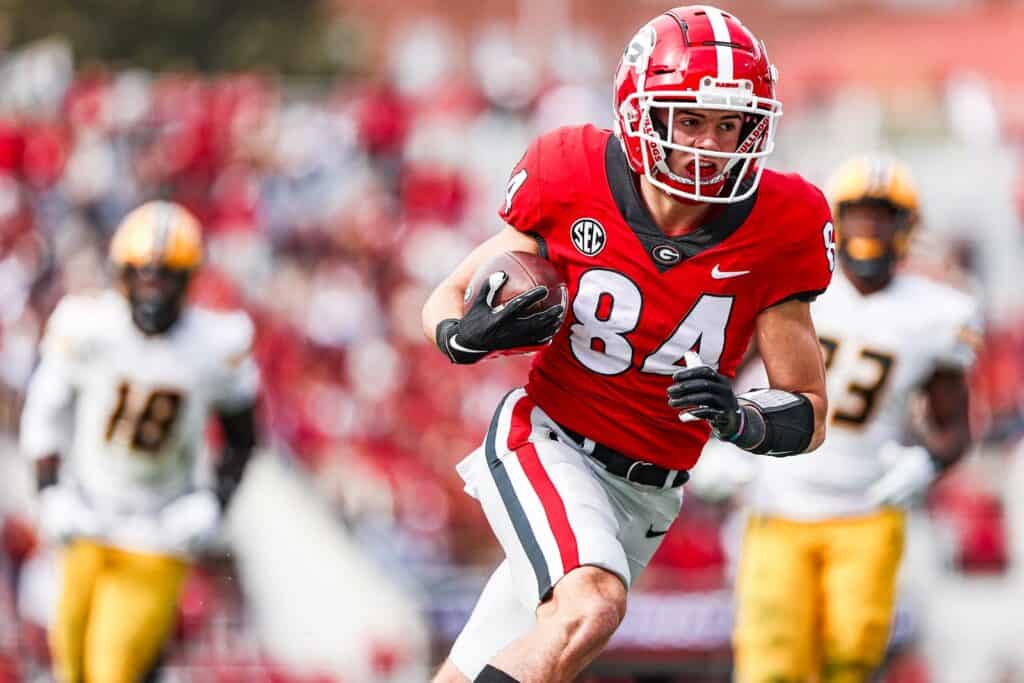 #1 Georgia: 7 catches 71 yards. Highlight reel catch to start off the game. Filthy footwork on a curl. Burnt a CB right on the line at the beginning of Q2, QB didn’t look. Many screens, which Georgia consistently blew up. Offensive line is awful, no time for plays to develop. Excellent twisting catch on a ball thrown far and away. Clearly on another level. Leaps off the tape even against Georgia.