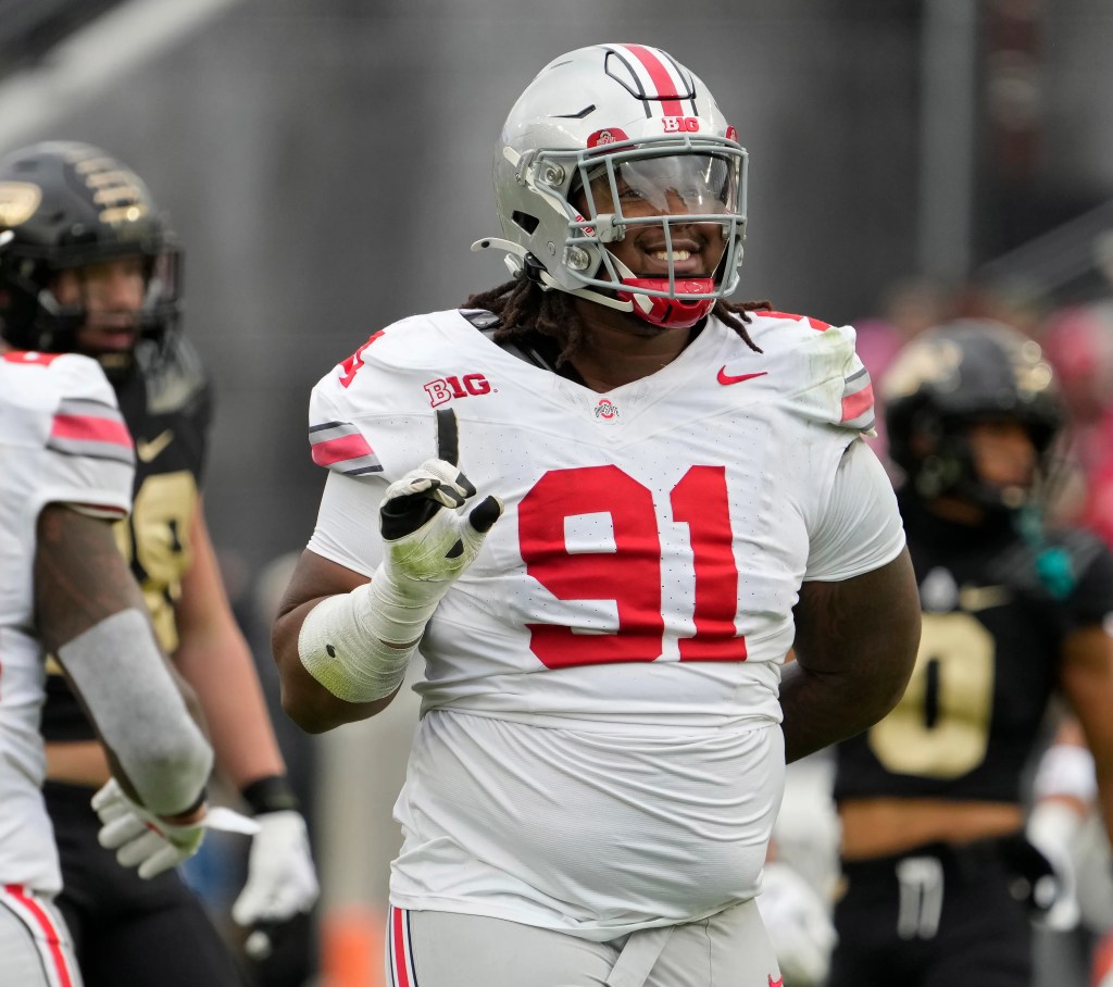 KEY MATCHUP: #3 Ohio St – 2 TKL / 1 SK. Easily overpowered. Repeatedly stonewalled by tight ends. Picked up his sack on an admittedly filthy spin move in garbage time, but otherwise provided little impact.